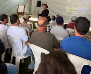 Na etapa prática, os produtores – tanto de gado de leite quanto de corte – participaram de uma aula em campo, aprimorando os conhecimentos aplicados no manejo diário dos animais.