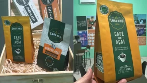 Atendendo à demanda do público, o Engenho Café de Açaí expandiu sua linha de produtos, introduzindo um blend especial que combina “os dois mundos”. Essa mistura é composta por 40% de café tradicional e 60% do caroço de açaí, oferecendo uma experiência mais próxima do café convencional, mas com o toque e os benefícios do açaí.