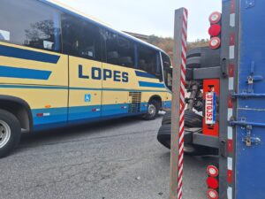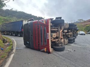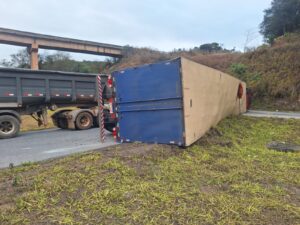 • “Carreta tomba em rotatória da AMG-120, em Itabira”