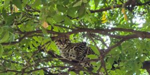 Uma jaguatirica foi resgatada pelo Corpo de Bombeiro neste domingo (1º), em um condomínio em Uberlândia, no Triângulo-Mineiro. Segundo os militares, o animal estava na
