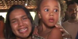 Mãe da menina autista que havia desaparecido em Minas, Karine Maciel não segurou a emoção ao reencontrar a filha, nesse sábado (31), três dias após
