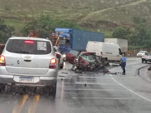 Uma grave colisão entre um veículo de passeio e um caminhão tirou a vida de um homem na manhã desta quarta-feira (21), na BR-381, em