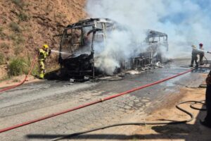 Um ônibus foi destruído por um incêndio na tarde deste domingo (28), na rodovia MG-133, após a entrada de Rio Pomba, no sentido Juiz de