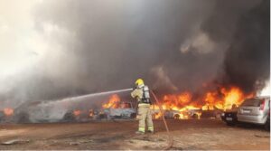 Um incêndio de grandes proporções atingiu, na tarde deste sábado (26/7), o pátio de veículos apreendidos do Detran em Uberaba, no Triângulo Mineiro. De acordo