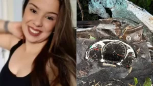Uma jovem de 25 anos morreu após o carro em que ela dirigia invadir a contramão e bater em um caminhão na BR-267, em Nova