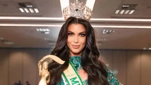 A modelo conquistou o título de Miss Brasil 2025 em julho deste ano representando a Paraíba. O concurso aconteceu em São Paulo e contou com