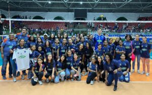 Alunos do projeto de vôlei da Secretaria de Esportes, Lazer e Juventude da Prefeitura de São Gonçalo do Rio Abaixo, em parceria com o Sada