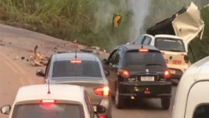Acidente entre caminhão e dois carros deixa dois mortos em MG