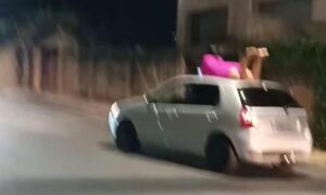 Uma mulher, de 31 anos, foi flagrada andando no teto de um carro na noite desse domingo (22/9), no bairro Petrópolis, Região do Barreiro de