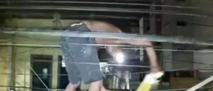 O flagrante de furto foi feito no último sábado (30), na Rua Barão de Ubá, na Praça da Bandeira. Bandido se equilibra em cabos de
