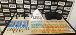 Durante patrulhamento, Policiais Militares depararam com um veículo nas proximidades do bairro Cruzeiro Celeste. Procedida a abordagem, foi encontrado uma arma de fogo tipo pistola