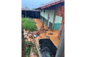 Na tarde desta sexta-feira (5), a Escola Estadual Secundino Tavares, localizada no bairro Panorama II, ficou alagada devido às fortes chuvas que atingiram Montes Claros.
