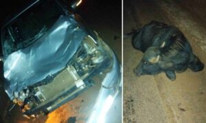 Uma manada de búfalos provocou dois acidentes na MG-255, entre Frutal e Itapagipe, no Triângulo Mineiro, na madrugada desse domingo (27/7). As batidas causaram danos diversos em um
