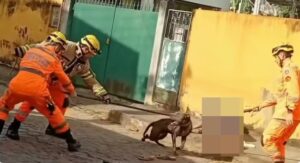 Uma idosa de 77 anos foi atacada por um pitbull na manhã desta quinta-feira (29), no Bairro Bandeirantes, em Leopoldina e, para evitar que o animal a