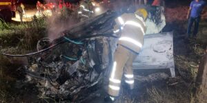 Dois irmãos, de 17 e 26 anos, morreram neste domingo (16) após o carro em que estavam capotar e pegar fogo na MGC-401, próximo a