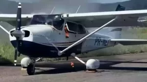 Uma aeronave de pequeno porte pegou fogo após realizar um pouso de emergência no aeroporto de Pará de Minas, no Centro-Oeste do estado, neste sábado