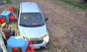 Durante uma aula prática de direção, um aluno perdeu o controle do carro, subiu na calçada de um bar e quase acertou um dos clientes