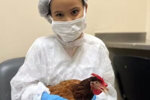 Amigas em todas as horas. É assim a relação da menina Tifany Ester, de 10 anos, com a sua galinha de estimação, a Pâmela. A