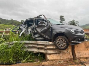 Uma pessoa morreu e outras duas ficaram feridas em uma batida entre uma carreta e um caminhão na BR-116, próximo ao km 575, em Manhuaçu,