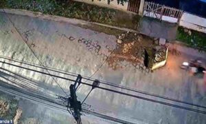 Um motociclista, que não teve a idade divulgada, caiu em um buraco ao bater contra uma placa de sinalização de obra da Copasa na cidade