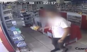 Uma tentativa de assalto a uma farmácia foi cenário de uma reação inusitada, nessa quarta-feira (21), em Montes Claros, no Norte de Minas. Câmeras de
