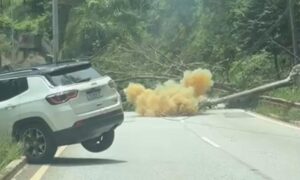 A queda de uma árvore provocou danos na MG-030 em Nova Lima, na Região Metropolitana de Belo Horizonte, nesse sábado (7/2). Segundo o Corpo de Bombeiros Militar de