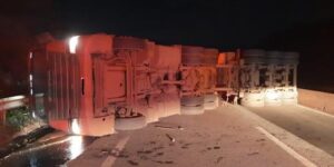 Motorista morre após carreta com minério tombar e fechar BR-381 na Grande BH