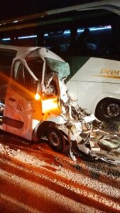 Duas pessoas morreram em um acidente envolvendo uma van da Secretaria de Saúde de Timóteo e um ônibus da Gontijo na BR-381, em Nova Era,