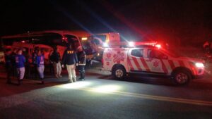 Um ônibus de excursão ficou destruído na manhã deste domingo (13/7) após incêndio na rodovia MG-188, em Unaí, no Noroeste mineiro. Segundo o Corpo de