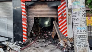 Uma loja de roupas e acessórios para crianças no bairro Glória, região noroeste de Belo Horizonte, ficou completamente destruída após ser incendiada na madrugada deste domingo