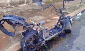 Uma mulher pediu ajuda aos bombeiros depois que sua motocicleta elétrica scooter pegou fogo na manhã de domingo (5/1), em Uberaba, na Região do Triângulo Mineiro.