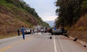 Uma batida envolvendo uma moto e quatro carros deixou ao menos uma pessoa morta e outra gravemente ferida na BR-356, em Ouro Preto, na Região
