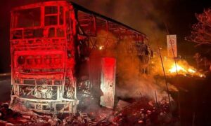Um ônibus pegou fogo na noite desse domingo (4/8), na BR-381, a rodovia Fernão Dias, em Carmópolis de Minas, no Centro-Oeste do estado. Segundo o