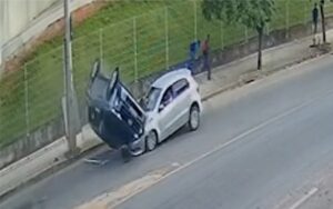Um carro capotou no cruzamento da BR-116, em Teófilo Otoni, nesta terça-feira (13/1), enquanto um grupo de criminosos tentava fugir após um assalto na cidade