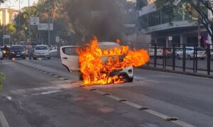 Carro pega fogo e trava trânsito em importante avenida de BH