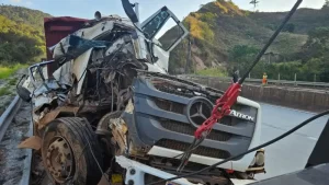 Motorista sai ileso após acidente grave entre carretas na BR-381, na região do Vale do Aço (MG)