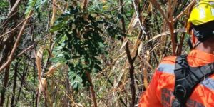 Um homem de 27 anos e o cão dele foram resgatados pelos Bombeiros após ficarem presos em um barranco de aproximadamente 10 metros de altura,