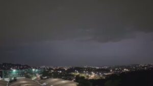Moradores de várias regiões de Belo Horizonte ficaram assustados com a quantidade de raios que caiu durante a chuva. Imagens feitas no bairro Palmeiras, na Região Oeste, mostram vários clarões no céu.