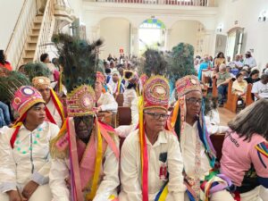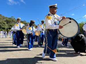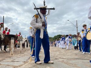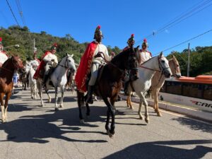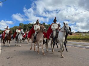 As guardas são-gonçalenses das localidades de Borges e Fernandes, além dos Cavaleiros de São Jorge foram as anfitriãs do encontro e guiaram os grupos em cortejo da avenida Central até a igreja Matriz, onde foi celebrada a Missa Conga.
