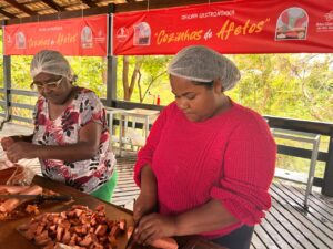 As atividades começaram no dia 10 de novembro, com a Oficina Gastronômica “Cozinhas de Afetos”, na Praça Central. Durante quatro dias, o público foi convidado a mergulhar na culinária afro-brasileira, aprendendo receitas típicas, técnicas ancestrais e o valor simbólico de cada ingrediente — uma vivência que une afeto, memória e pertencimento.