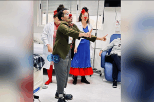 “Ela me abraçou e eu fiquei calado, sem saber o que falar para consolar. Quando ela soltou o abraço, agradeceu: ‘Você foi a primeira pessoa que só me deixou chorar’. Mal sabia ela que eu queria muito conseguir consolar, mas na hora em que ela me falou isso, eu disse: ‘Ah, então tem esse outro ombro aqui se você quiser continuar chorando’. E ela começou a rir e dizer que eu era muito palhaço. Ali me apaixonei pela palhaçaria hospitalar“, detalhou Juan.
