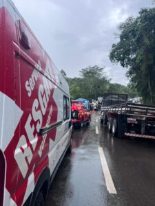 Equipes do Corpo de Bombeiros foram acionadas e trabalham no resgate das vítimas, com apoio do SEVOR, de João Monlevade. Profissionais da BR Vida também atuam no atendimento pré-hospitalar.