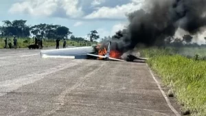 Uma aeronave de pequeno porte pegou fogo após realizar um pouso de emergência no aeroporto de Pará de Minas, no Centro-Oeste do estado, neste sábado (25). Ninguém ficou ferido.