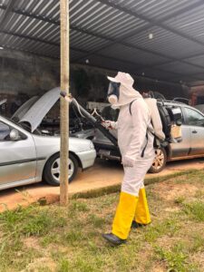 Os trabalhos foram intensificados, já que foram 181 casos confirmados na cidade até a última segunda-feira, 29. Estamos realizando o UBV costal que consiste na bomba costal nas regiões de cada caso confirmado.