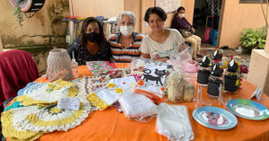 Goretti chegou ao InterAgir quando iniciou um tratamento no Caps, e lá entrou no grupo de artesanato “aos 50 anos, sem nunca pegar numa agulha”. Fazer parte do InterAgir foi automático. Para ela, estar no espaço é um momento de muita paz: “É um lugar de aconchego, de paz para mim, de quietude, de amizade, de amor, de acalento. Às vezes a gente está para baixo e chega lá chorando, chega meio deprê. E daí a pouquinho começa a conversar, brincar. A gente faz muita arte, a gente ajuda pessoas, a gente é ajudado. Eu sou mais extrovertida, mais brincalhona, então eu convivo com todo mundo. Eu chego, abraço, eu beijo todo mundo, coloco apelido. Brinco, chamo um de uma coisa, de outra, eu faço a festa lá. Lá para mim, é um lugar de excelência. Eu não consigo ficar sem ir mais, é um vínculo muito forte que eu tenho ali. A gente tem um vínculo de família”, descreveu. Ela aprendeu a fazer artesanato, tanto para vender, quanto para doar ao centro de socialização para bazares. Alguns itens são colares de tecidos, bonecas de pano, enfeites de canetas etc.