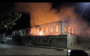 Um incêndio consumiu, na madrugada desta sexta-feira (26), o prédio histórico que atualmente abrigava a Secretaria Municipal de Saúde de Santa Bárbara.